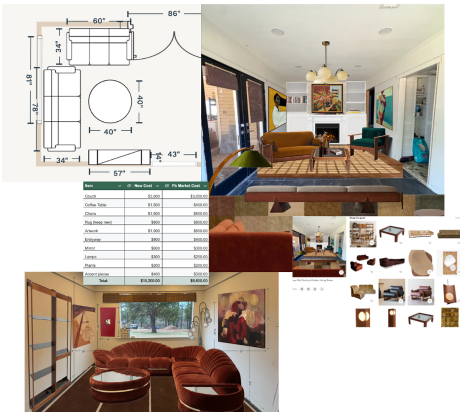 – Furniture and decor sourcing (new and vintage/secondhand)
